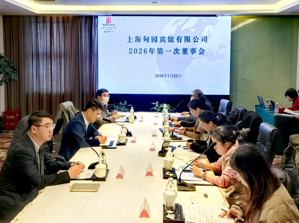 为完善公司治理结构,规范决策管理机制,明确新一届董事会履职方向,1月22日上午,上海甸园宾馆有限公司2026年第一次董事会在甸园宾馆召开。公司全体董事王凡、王佳丽、刘其霞、吴建国、余南飞、吴懋亮、陈雅欣出席会议,资产经营公司总经理金斐受邀出席,甸园宾馆总经理周一珺列席会议。会议由公司董事长、法人代表王凡主持。